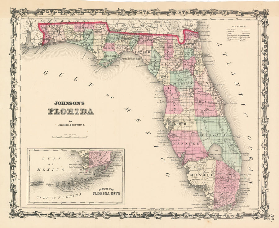1861 Johnson’s Florida | Plan of the Florida Keys โ the Vintage