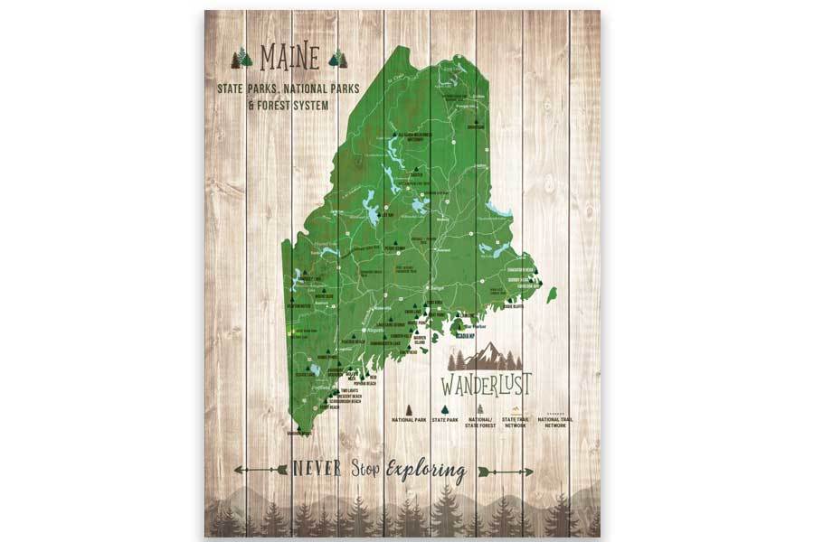 Maine State Park Map, Push Pin Board, Hiking Map – World Vibe Studio