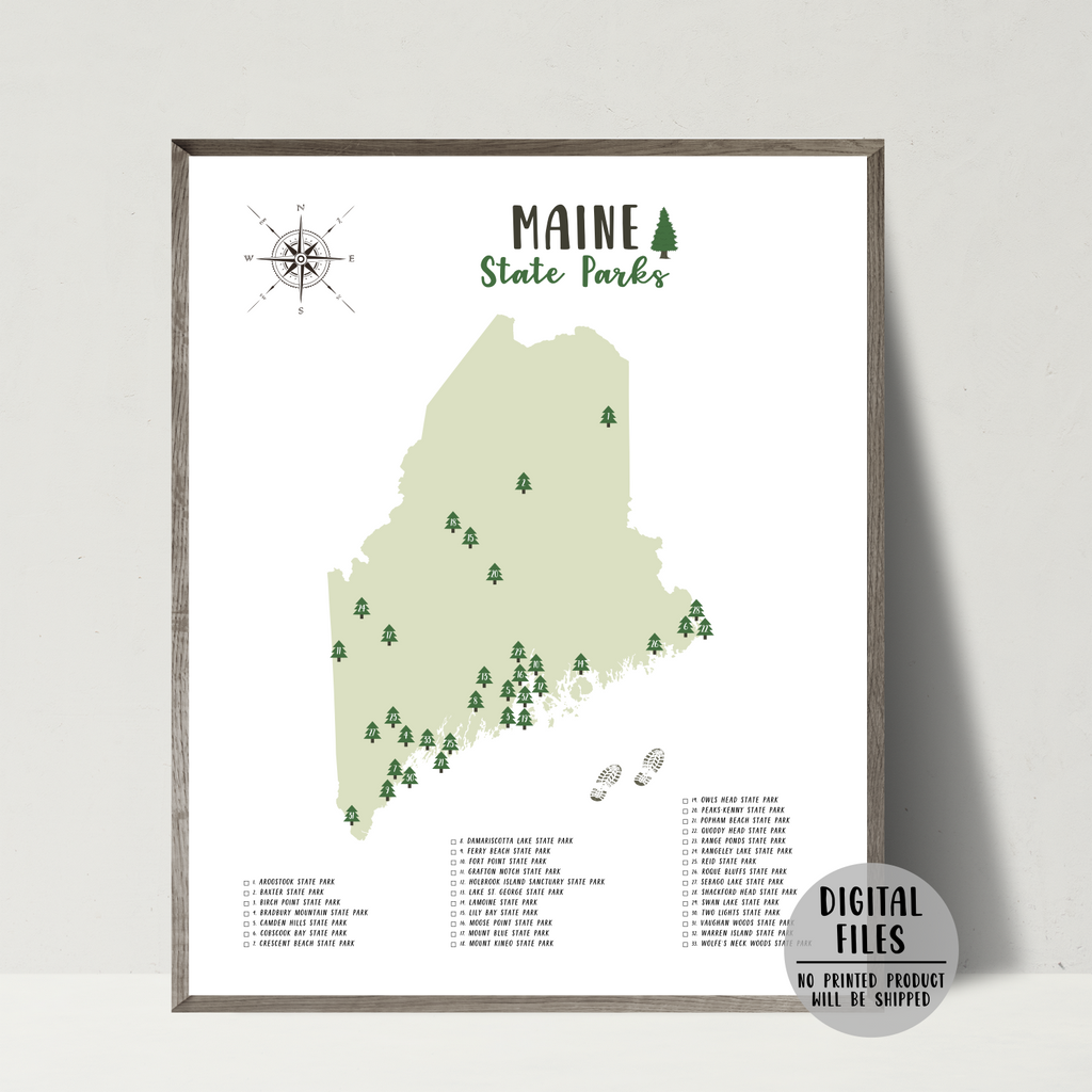 Maine State Parks Map | Maine Map | Gift For Traveler | Digital